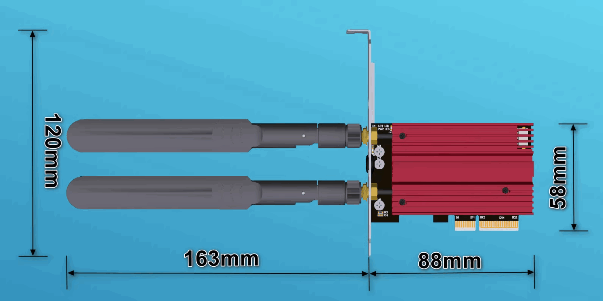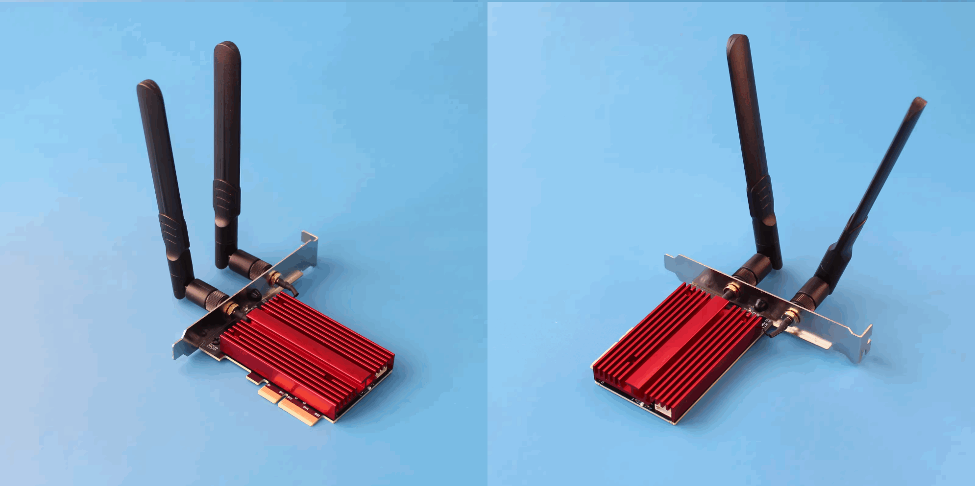3. Secure the network card to the case with screws. Finally, screw the antenna onto the card.